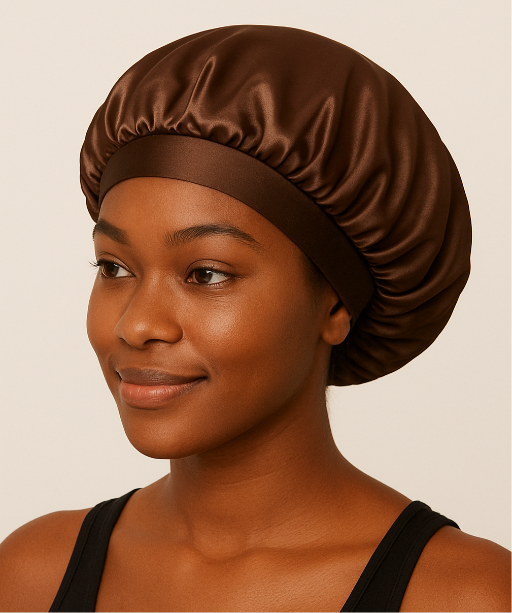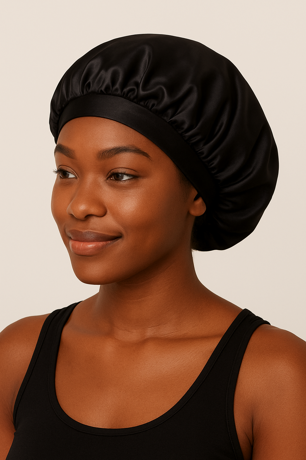 Preserve your hair’s beauty even while you sleep. This satin bonnet, designed with a wide elastic band, offers a gentle yet secure fit that keeps curls intact and moisture locked in—no more messy mornings or dry, frizzy strands.